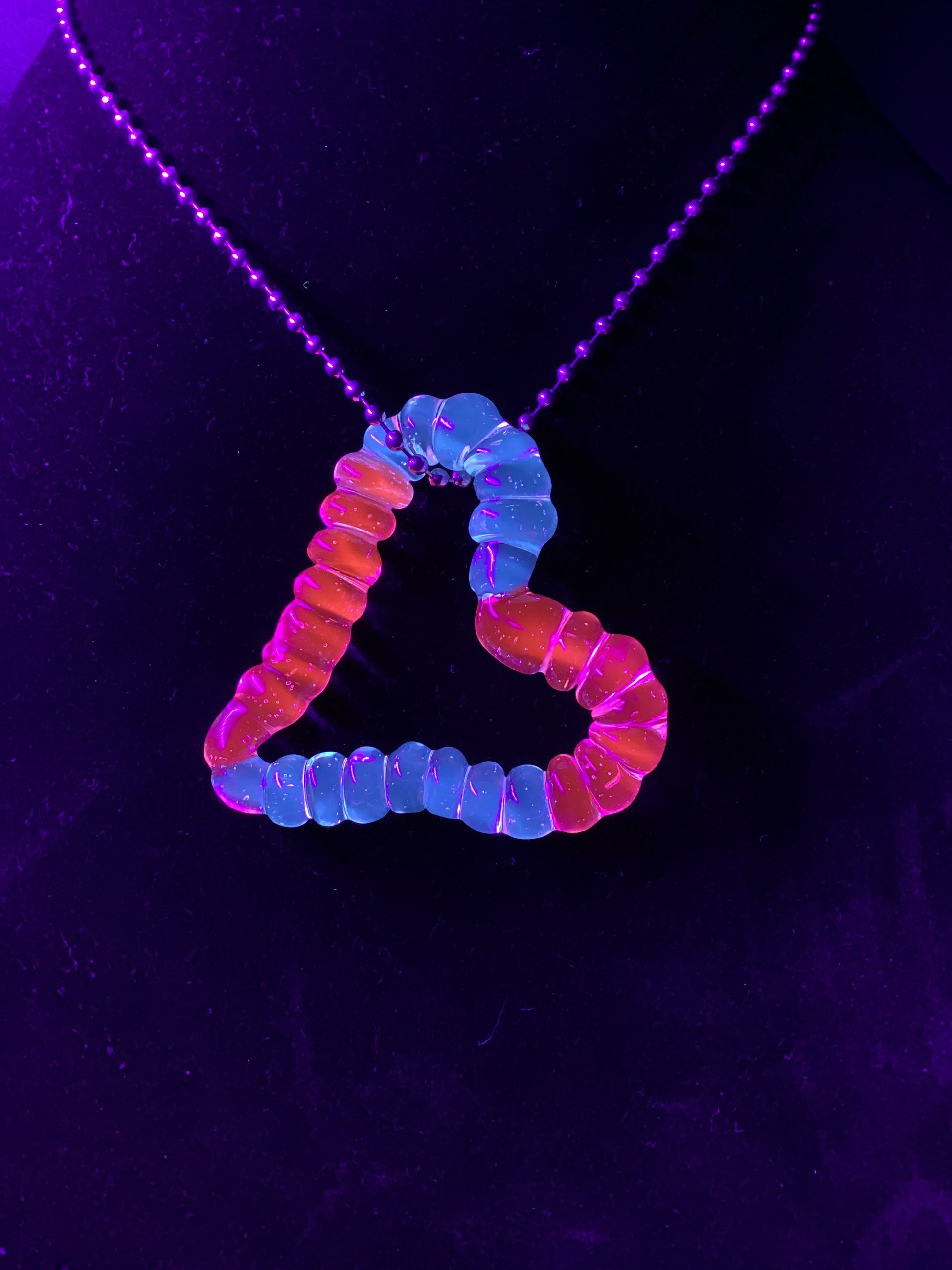 These gummy worms pop super bright under UV light, and are forever snuggling in a heart shape.